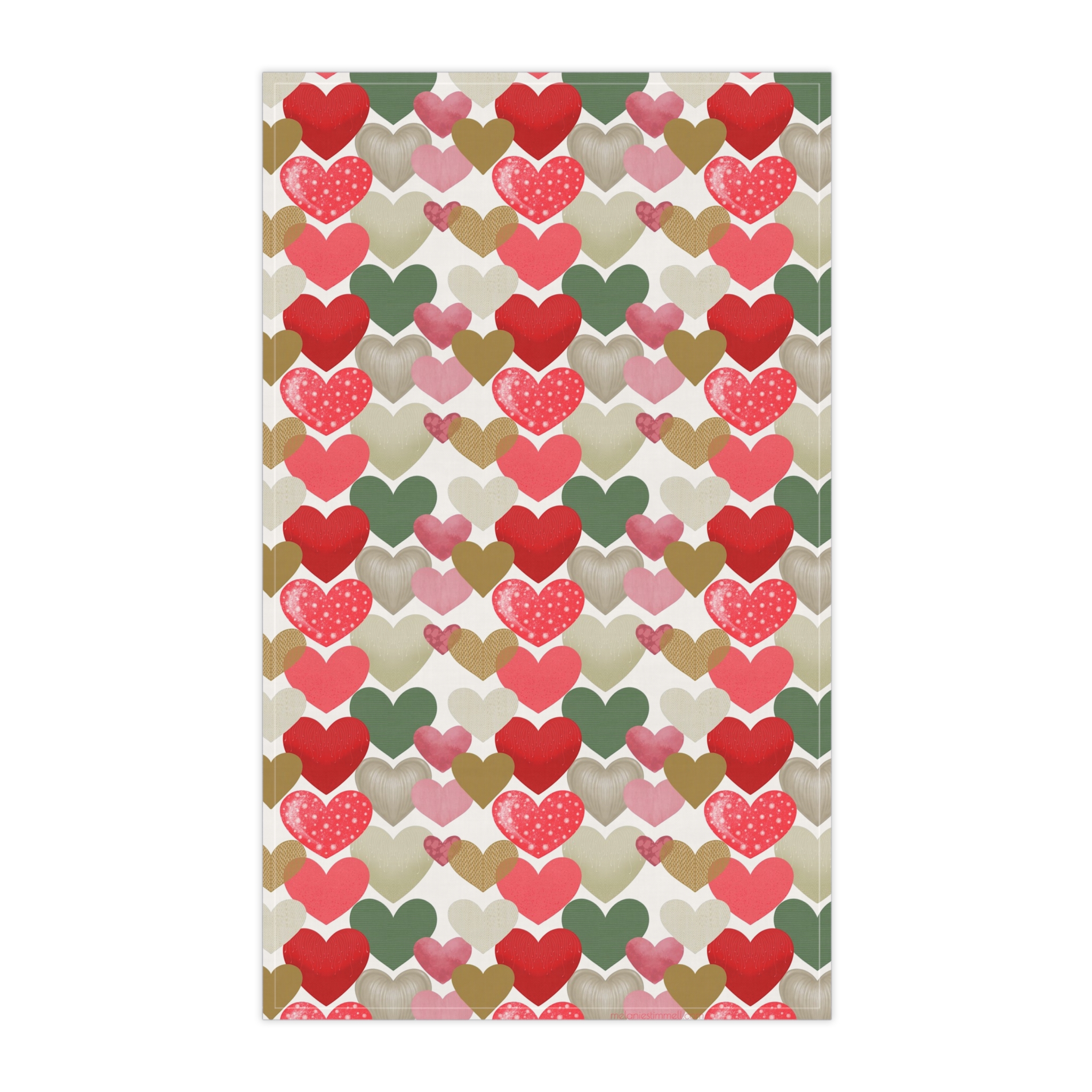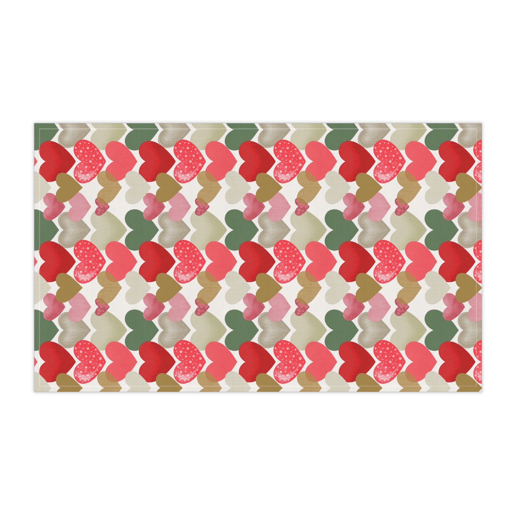 Valentine Hearts Tea Towel — Red & Gold Heart Pattern (Coordinates with Valentine Piglet)