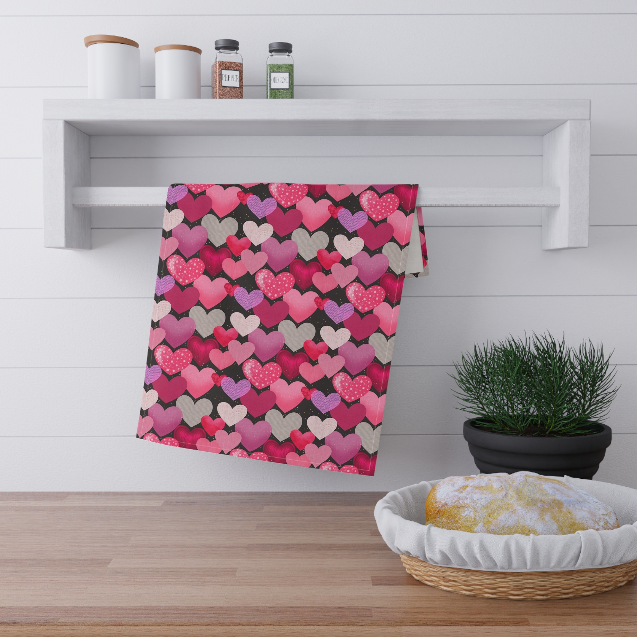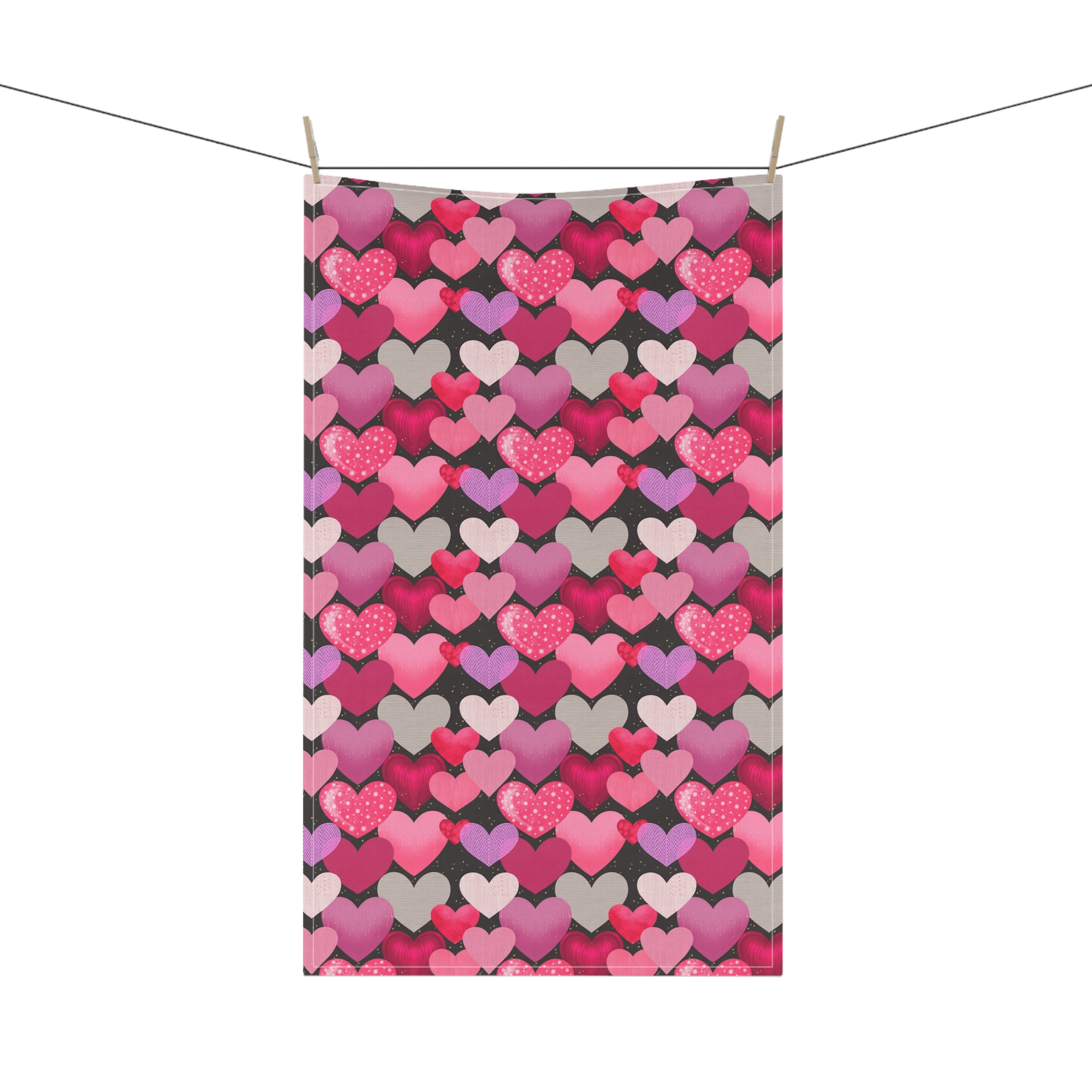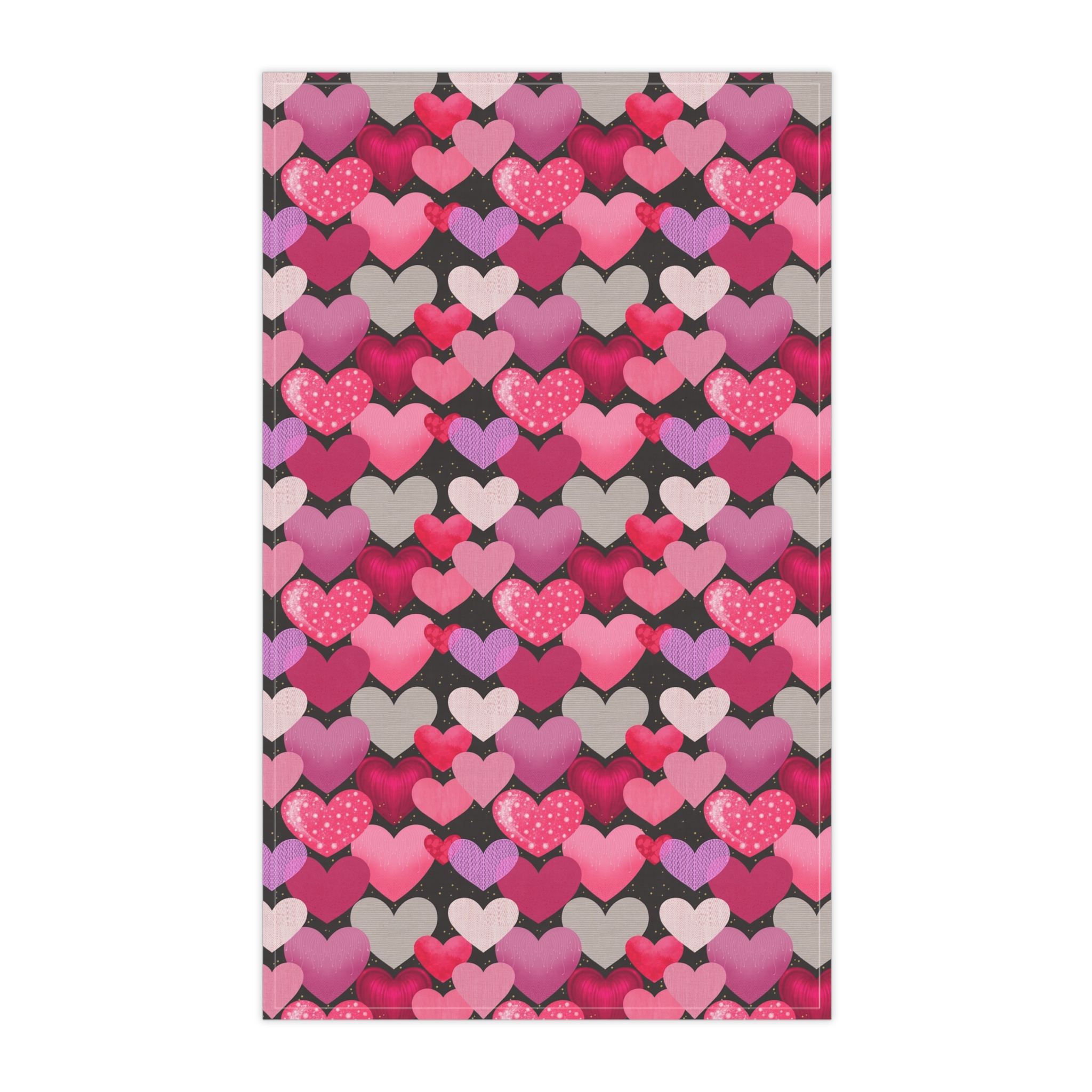 Valentine Hearts Tea Towel — Reds & Pinks Heart Pattern